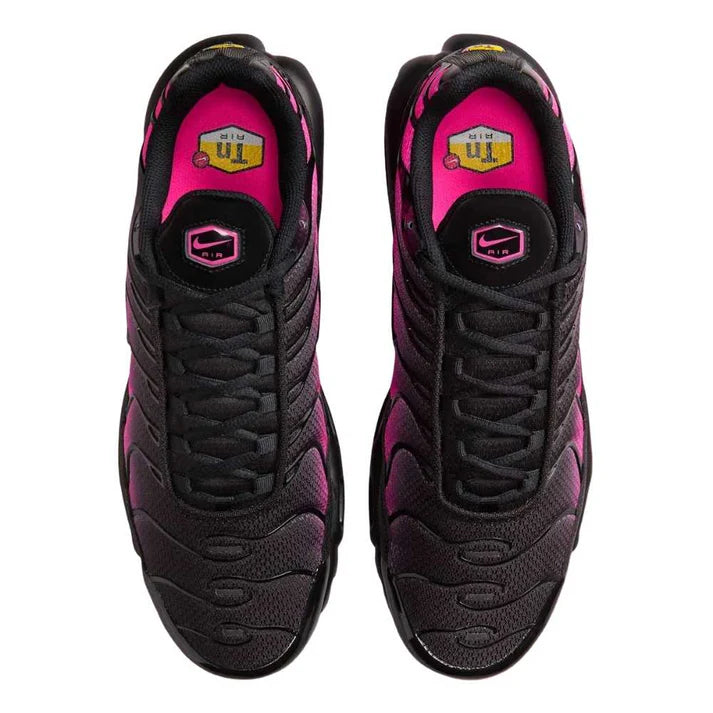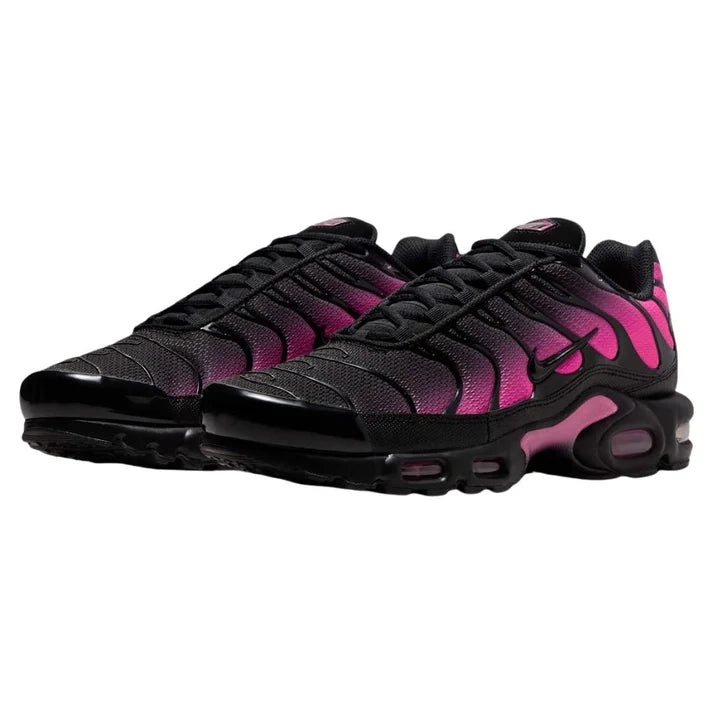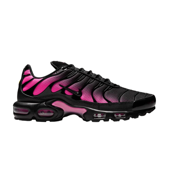 The Nike Tn "Hyper Pink" breaks from convention with a bold and unapologetic color scheme that challenges the norms of typical men's Nike Tn releases. Featuring a striking diagonal ombré gradient, the design transitions seamlessly from jet black at the toe box to an intense hot pink at the heel — a visual that commands attention to the the silhouette. The decision to pair such a vibrant pink with a traditionally masculine model like the Tn (Air Max Plus) pushes boundaries and embraces a more fluid approach to sneaker style.